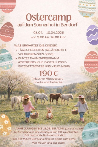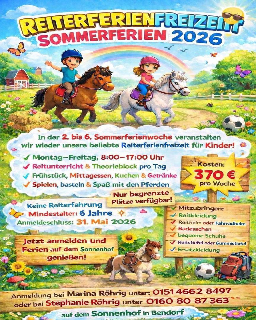 Anmeldungen für die Reiterferienfreizeit in den Osterferien und Sommerferien 2026 werden ab sofort entgegen genommen.